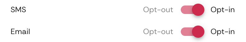 The SMS and email opt-in switches must also be on for the user to receive that type of notification. Users can change this toggle themself.