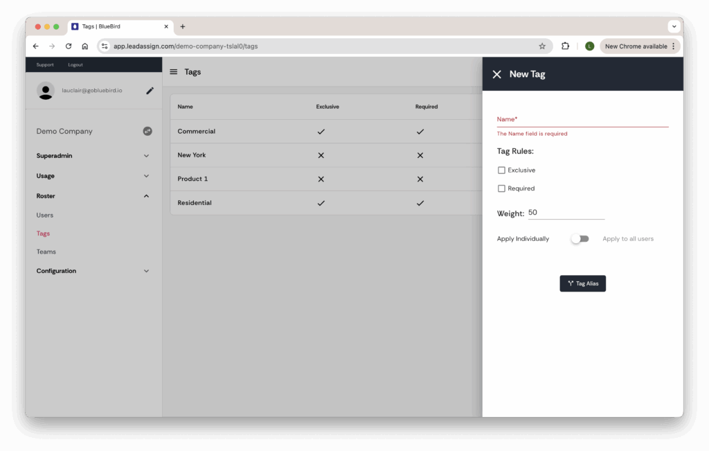Required tags also make a lead harder to qualify for. If a lead contains one or more required tags an agent must contain ALL required tags to qualify for a lead.